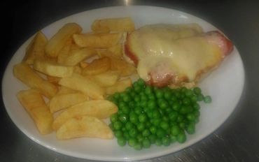 Served with chips or new potato's and peas