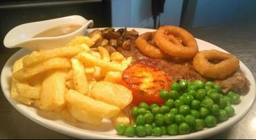 served with chips or new potato’s vegetables and gravy